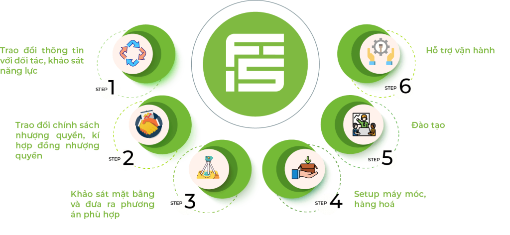 Chúng tôi đồng hành cùng bạn từ bước đầu tiên – khảo sát địa điểm kinh doanh, đến lựa chọn và tư vấn sản phẩm phù hợp với nhu cầu thị trường. Chúng tôi cam kết hỗ trợ bạn xác định vị trí đặt cửa hàng và lựa chọn sản phẩm để tối đa hóa sự hài lòng của khách hàng và hiệu suất kinh doanh.